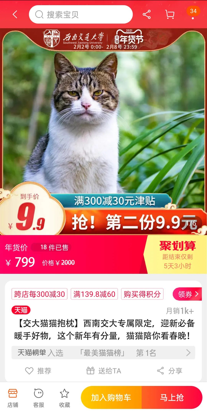 若拥有交大猫猫抱枕