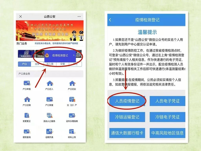 疫情检测码:请一定要在微信提前关注并在“山西公安公众号-民生警务-疫情检测登记-个人疫情登记”填写,下高速时出示二维码!
