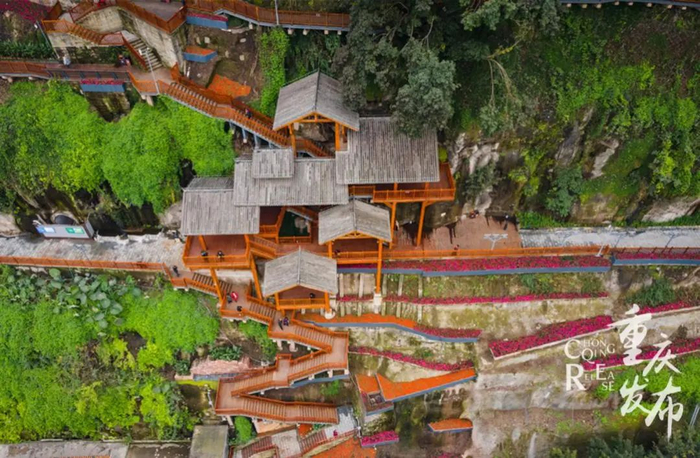重庆渝中区,依山而建的戴家巷崖壁步道建成开放。该步道紧挨洪崖洞,建筑面积约6362平方米。走在步道上,江面的游船、桥上的轨道、千厮门大桥和洪崖洞美景尽收眼底。
