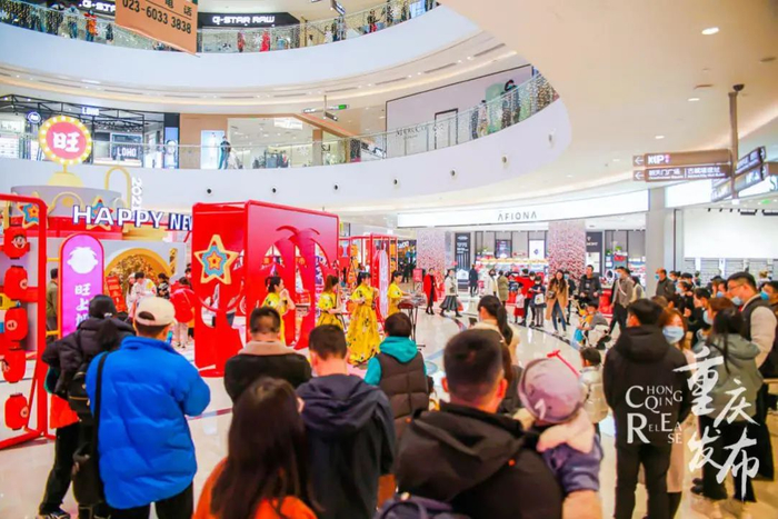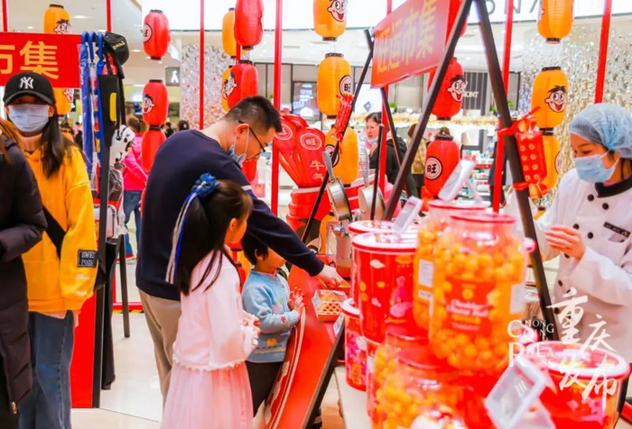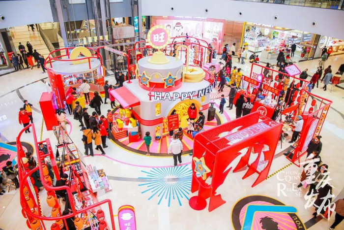 重庆来福士广场,充满年味的“旺运市集”活动。