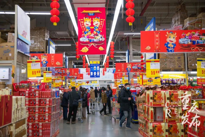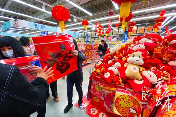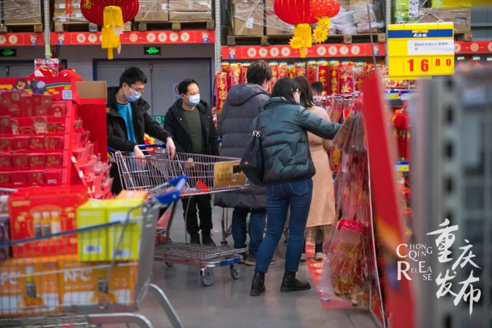 重庆两江新区龙湖礼嘉天街,市民在山姆会员店内选购年货。