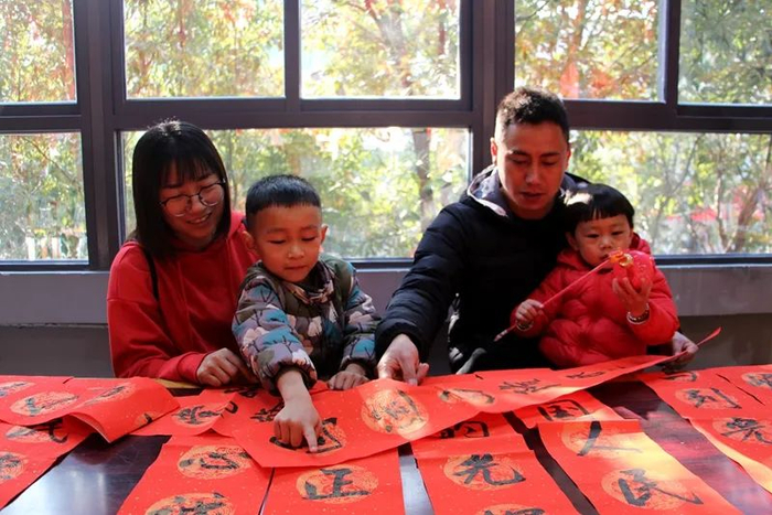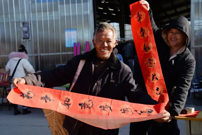 红河哈尼族彝族自治州泸西县三塘乡年味正浓,当地群众写春联、贴春联。