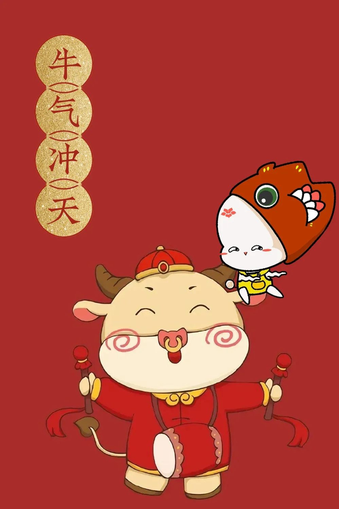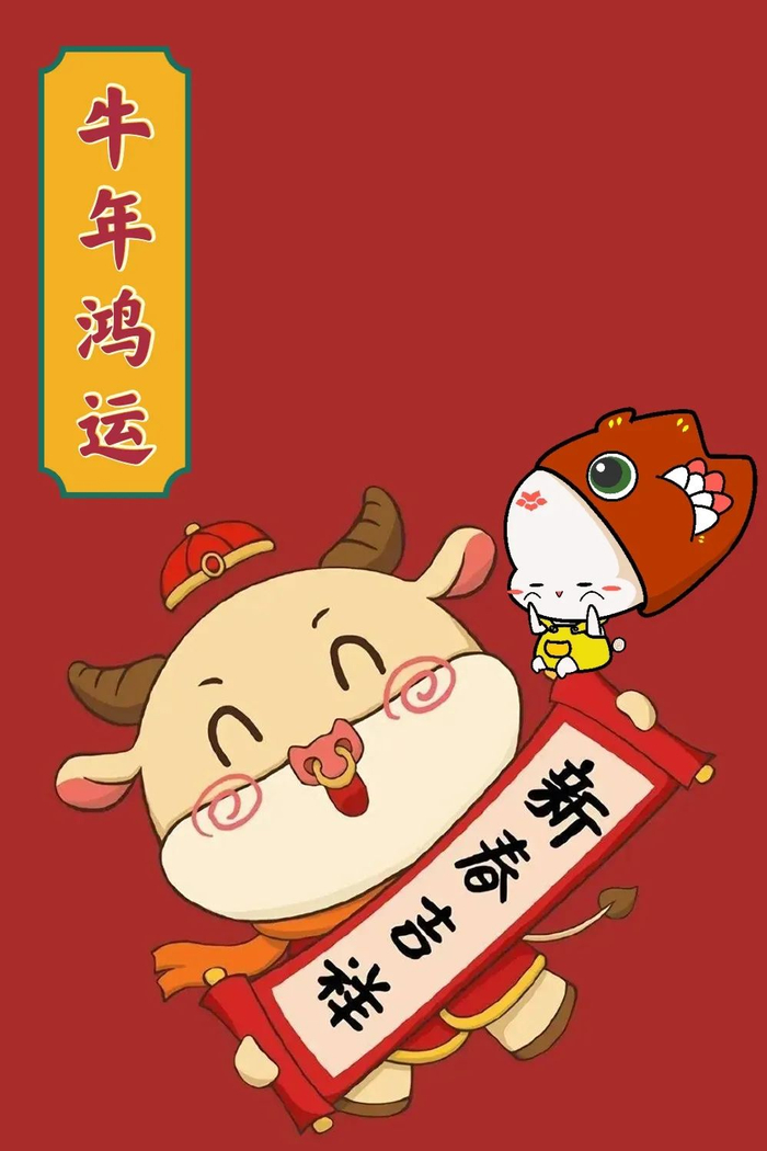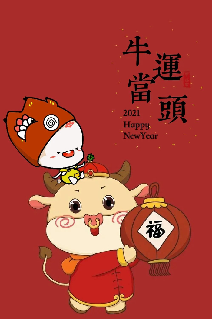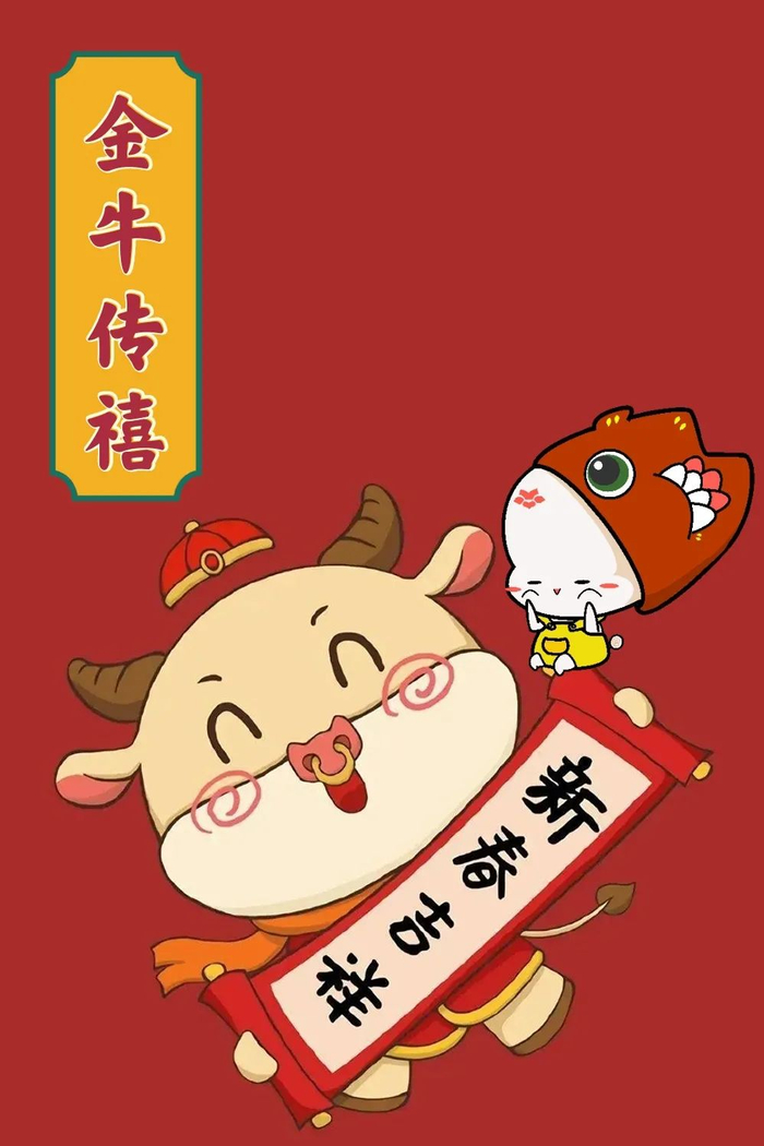头顶红裘帽,身穿红马褂的牛牛带着小红帽鲤工仔来给大家发红包了!敲锣打鼓送祝福,欢天喜地过大年,祝大家新的一年牛运亨通、大吉大利,牛气顶呱呱~~