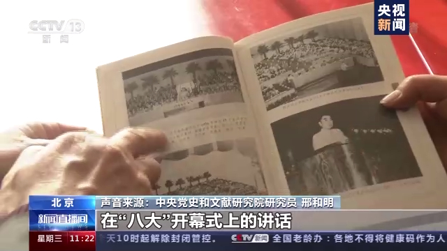 中央党史和文献研究院 研究员 邢和明:这张照片就是1956年9月15日毛泽东在“八大”开幕式上的讲话,他说这次大会的任务就是总结“七大”以来的经验,团结全党,团结国内外一切可以团结的力量,为把我国建设一个伟大的社会主义国家而奋斗。