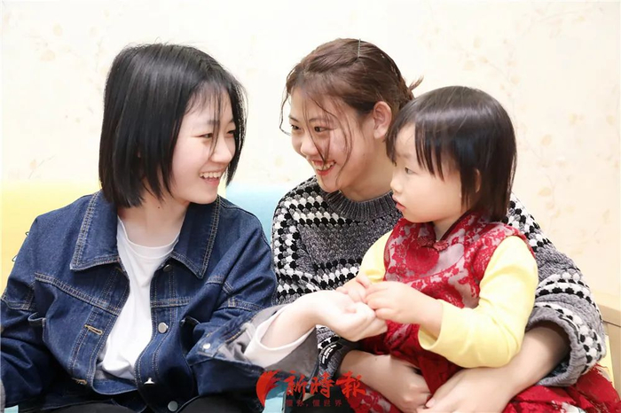 2月11日下午,史飞把两个学生带回家中时,婆婆和先生已经在厨房里忙活了半天,桌子上早已摆上了藕合、炸酥肉、烧鸡等,满满的年味。张琳璐和王小哲到家之后,很快跟史飞的女儿晓雅“混”熟了,小家伙依偎在两个小姐姐怀里看动画片,吃着奶奶刚炸出的藕合。张琳璐和王小哲一边陪晓雅看电视,一边帮她擦手,很是温馨。