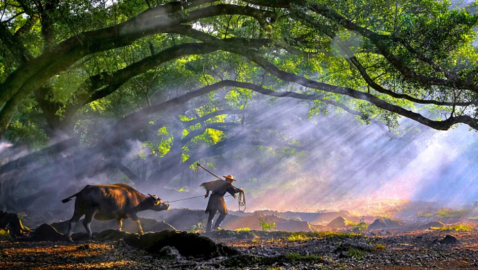 每当春回大地,田野上万物萌发,牛就到了最忙碌的时候。“朝耕及露下,暮耕连月出。自无一毛利,主有千箱实。”而说到服务和奉献,牛还有一个形象深入人心,那就是“孺子牛”。