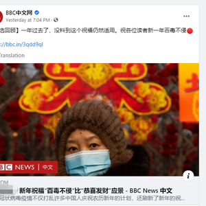 2020年1月29日,BBC中文网曾刊登过一篇标题含有“武汉肺炎”这一侮辱性名称的文章,该文以“新年祝福‘百毒不侵’比‘恭喜发财’应景”为题,以相当调侃的语气夸张地描述着当时中国国内疫情肆虐、民众对突发情况的担忧之情。