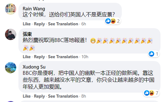 与之相对的是,不少中国网民则在评论区里你一言我一语,兴高采烈地调侃起BBC的“弱智言论”。