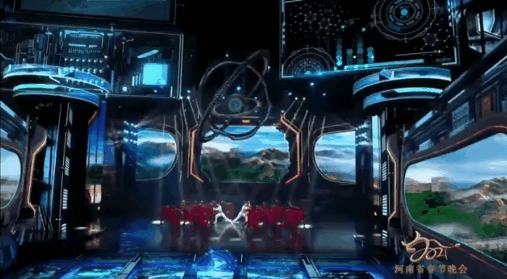 镜头再切,科技感十足的八卦盘内的太极表演仍在继续,再细看,这似乎是行进中的宇宙飞船的尾部。