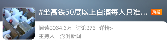 “坐高铁50度以上白酒只能带两瓶”,引网友热议