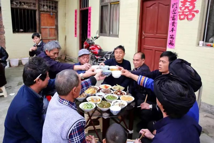 傍晚时分,宾客相继赶来,张大爷家庭院里变得热闹起来,吹牛聊天、喝酒猜拳、孩子追逐打闹……一番热闹过后杀猪饭慢慢落下帷幕,酒足饭饱后相亲们各自回家。