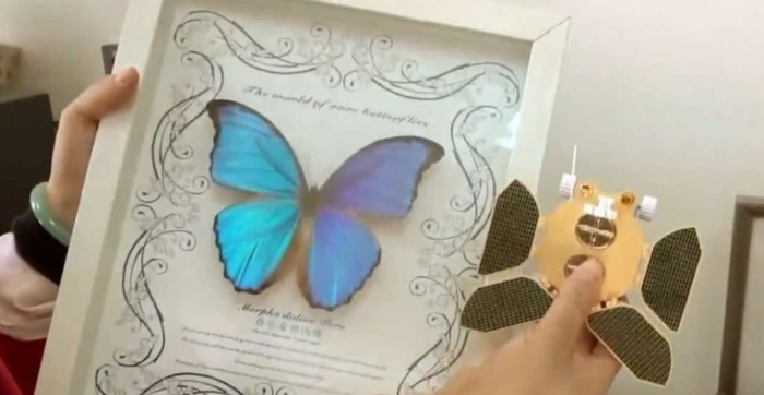 在航天科技集团五院天问一号探测器系统副总设计师贾阳的桌上,摆放着一个蝴蝶标本。他告诉记者,“我们的火星车就是一只美丽的蝴蝶。”