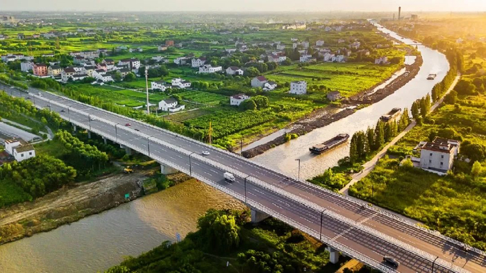 乌镇大道,总长28公里,双向六车道设计,沿线绿化分春花、湿地秋色、四季、夏荫四大特色主题,两侧建有1.5米宽的休闲绿道贯穿全线。