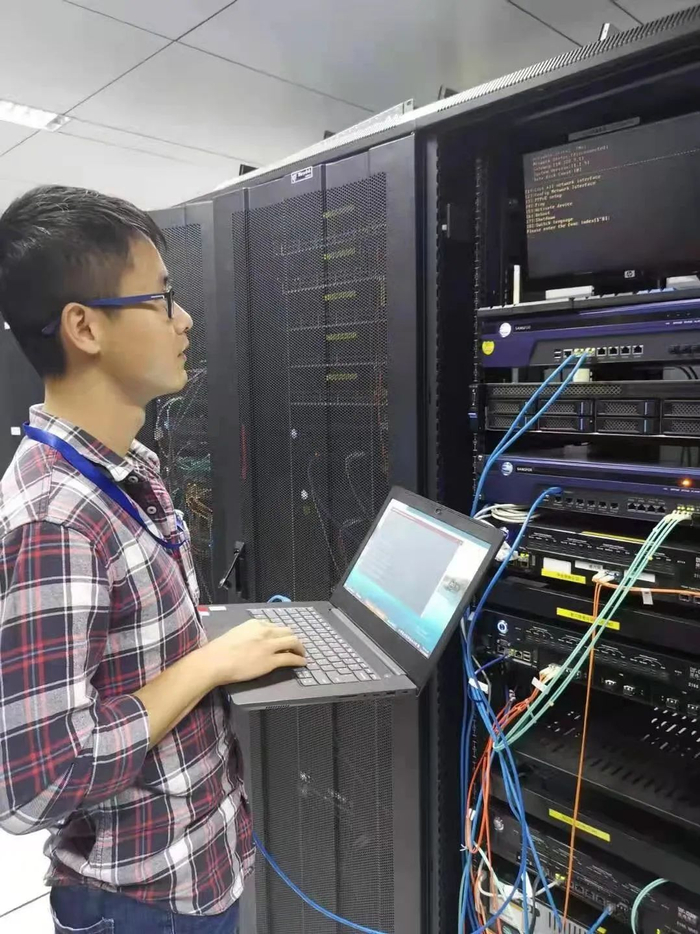 假期里,智慧校园的工作也不能懈怠,工作人员正在检查设备,保障智慧校园的正常运行。