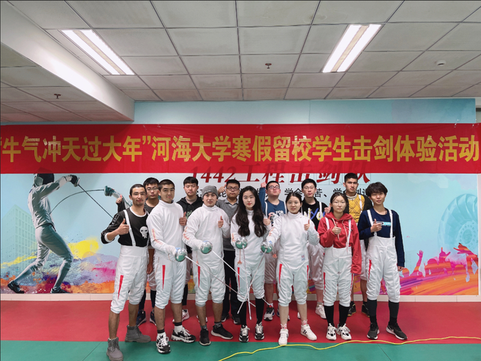 针对留校学生,除了日常防疫管理和合理的学习生活安排外,学校还特地策划了一场击剑体验活动,激励他们敢于亮剑、顽强拼搏、铸剑砺魂、直面挑战,以更加饱满的精神状态迎接新的一年。
