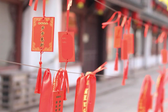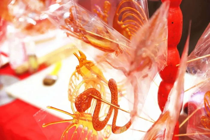 腊月的安昌古镇,入口两旁摆满了游客的祈福牌,满是祝福和期待。糖画师傅舀出一匙甜琥珀糖汁,集中精力在砧板上画画,用最朴实的方式制作独特的年味。