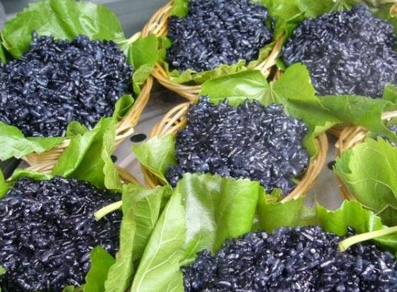 乌稔叶是乌米饭的关键原料。制作时,将叶子放进石臼中捣烂,滤过汁水,把糯米放入乌叶汁中浸泡,放入锅中,加水烹煮即可。用柴火土灶蒸煮出来的乌米饭风味最佳,刚出锅的乌米饭乌黑亮泽,散发出诱人的清香,凭谁也抵挡不住这样的香味。
