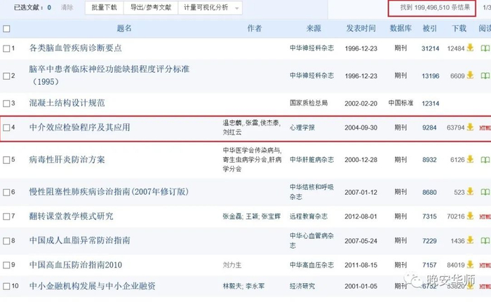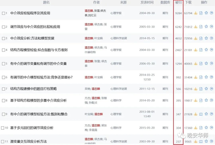 早在2019年底,温忠麟于2004年发表在《心理学报》上的《中介效应检验程序及其应用》一文被引量,就位居中国知网第一。在此后的13个月里,该论文的引用数量增加了1700多次,比第二名高出近2千次。