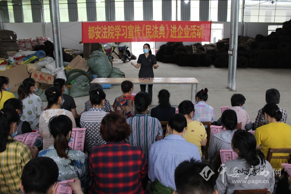 都安法院民庭法官到企业宣传民法典。