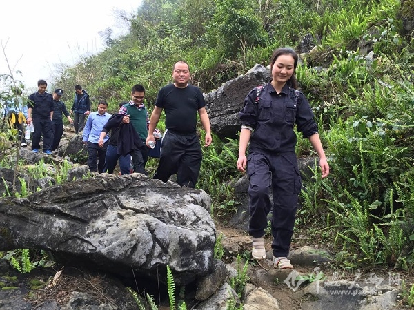 都安法院干警走在扶贫路上。