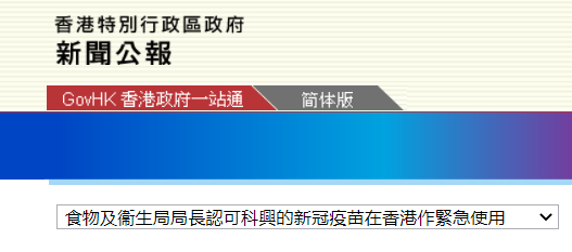 港府:认可科兴新冠疫苗在香港作紧急使用