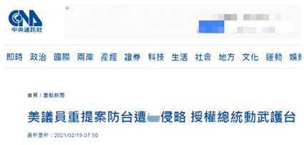 台媒:美议员重提“防止台湾遭侵略法案”鼓动武力护台,疯狂提案去年都没排入议程