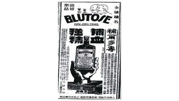 藤泽友吉于1894 年于大阪创立藤泽商店,后于1930 至1943 年间改名为藤泽友吉商店。之后业务逐渐扩展至台湾地区、瑞典、伦敦、美国、法国及德国。昭和时代一张 Blutose 的彩色海报中,一名微笑女子手持一瓶药水,旁边的广告词写着:“正しき補血強壮増進剤”(正牌补血健身剂)。