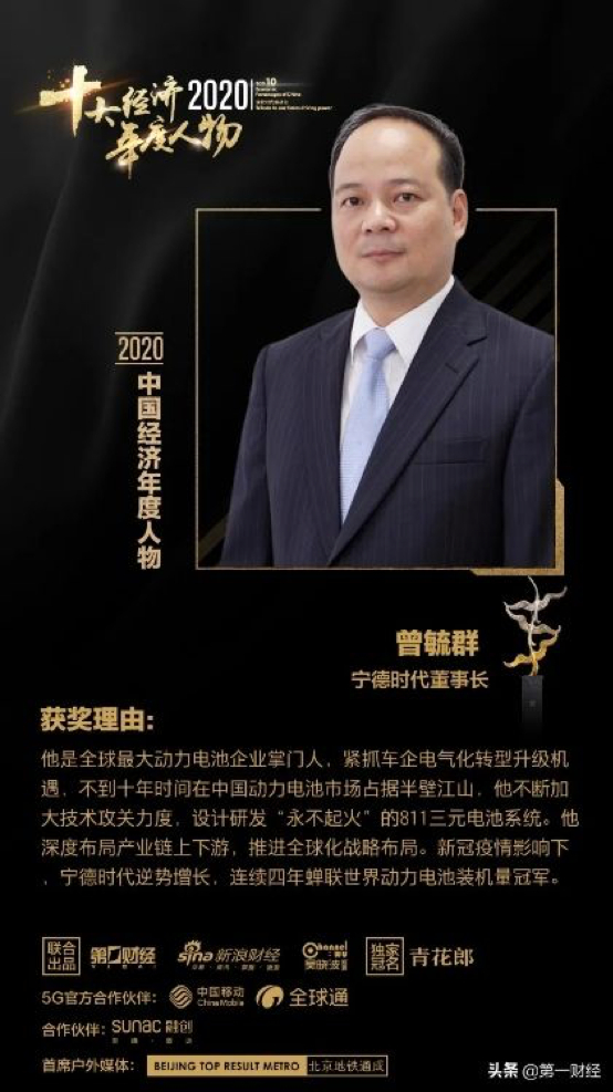 近日,由第一财经、新浪财经、吴晓波频道联合出品的“2020十大经济年度人物评选”,揭晓最终获奖企业家名单,我校1989届校友曾毓群上榜。
