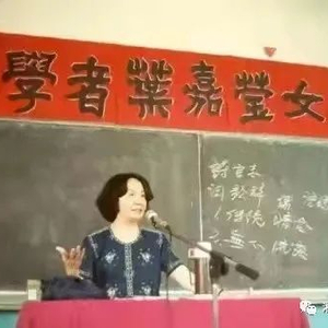 在网上流传的一张照片,是叶嘉莹教授在湘潭大学学术讲座的照片。六十多岁的她全程站在讲台上,面容慈善,精神焕发,侃侃而谈,还有手势。黑板上写着“诗言志”、“传统”、“无心”、“流露”等词汇,黑板上方有欢迎著名学者叶嘉莹女士的标语,但我也说不清这张照片是在哪个地方拍的。