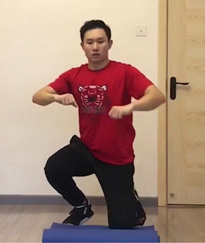 训练强度:双膝交替20次为一组,3组,组间休息30秒。