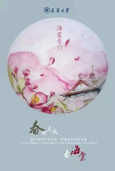 2.画面须包含“天大·海棠季”固定主题文字:“春回天大看海棠”;