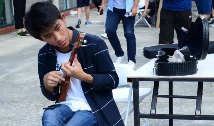 2018年秋季百团大战开始时,微电子专业研二学生朱坤铭坐在教研室里犹豫要不要去招新。在此之前,他常常独自在校园里弹琴,却鲜少遇到可以一起的伙伴,也找不到一个专门的组织。想到这些,朱坤铭脑门一热,回到宿舍带上自己的三把琴、一个音响,在百团的场地上找了个位置坐下,开始自顾自地弹琴。没来得及准备海报或二维码,从三个人的微信讨论组起步,找到了对尤克里里感兴趣的第一批人。自此,朱坤铭开始担任教学的工作,后来并顺利通过了社团答辩,正式成立了尤克里里社。