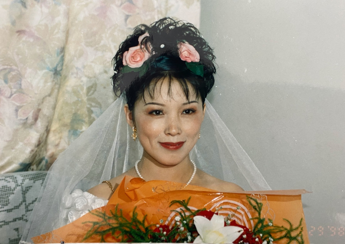“98年妈妈结婚时的照片,超级美丽!我有幸遗传了妈妈的酒窝~”
