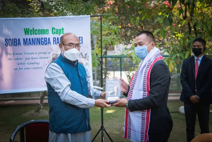 在这场冲突中,解放军官兵们奋不顾身、英勇战斗,把印军打得溃不成军,抱头逃窜,丢下大量越线和伤亡人员。据印度官方此前公布的数字,印军在这场冲突中死亡20人。 曼宁巴并不在其中,他活着逃回了印度。 事实上,在曼宁巴攻击祁发宝团长的画面曝光前,他的名字几乎没有见诸印度媒体的报道。《印度时报》等印媒也是在这两天的报道中提及,曼宁巴曾在1月底印度“共和国日”上被印度总统授予“战报传令嘉奖(Mentioned in dispatches)”的荣誉,以表彰他在作战时的“英勇”表现。 中方公布的冲突视频意外让曼宁巴成了印度官方炒作的对象。 2月20日,曼宁普尔邦首席部长辛格(N Biren Singh)在推特赞扬曼宁巴“为国家挺身而出的勇气”。 2月23日,辛格更高调在官邸接见了曼宁巴,并为他颁奖。辛格还把两人见面的照片发在推特上,写道:“我们总是感激像他这样为了国家安全和保障在前线身先士卒的士兵。”