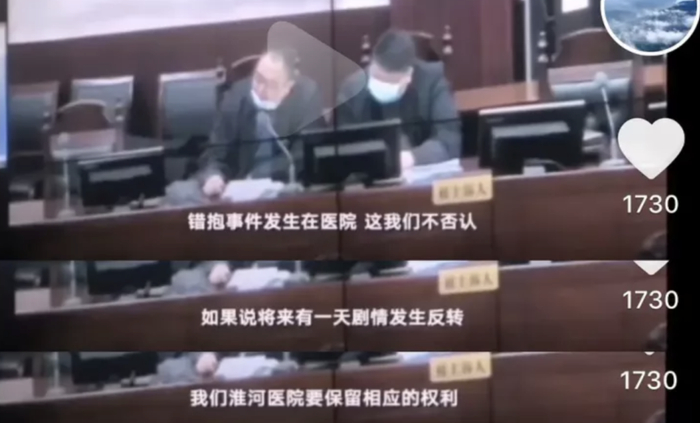 2、当时为两家人接生的医院当班护士叫郭希志(来源医院病历单),疑似为姚策亲父郭希宽的堂妹,暂未得到证实。三甲医院对乙肝大三阳患者孕妇和产儿是单独隔离的,且婴儿带手环,护士抱错几率极小。3、杜新枝说自己怀孕时不知道自己大三阳,但是她在防疫站工作的兄弟在庭审时作证说她在怀孕时知道自己乙肝大三阳,于是全家打了疫苗。但郭威却并没有在淮河医院打疫苗,杜新枝说的是找村医给郭威打了疫苗,但疫苗本丢了。4、此前采访中,杜新枝还称阻断针错打在了郭威身上,导致姚策患癌。事实上1992年市面上根本没有阻断针,1999年才被使用,郭威也没有打过阻断针。