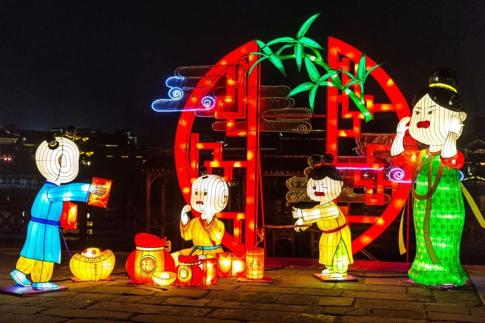 感受火树银花,逛灯市、走灯阵,真诚祈愿,与家人一同放漂心愿河灯祈愿新年顺风顺水,平片安安。