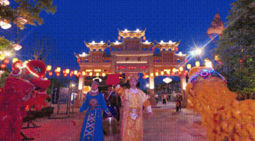 暮色四合时,铜官窑古镇元宵节千灯齐亮,数万平米的铜官窑古镇,蜕变成一片光影交织的炫彩天宫,场面梦幻唯美。