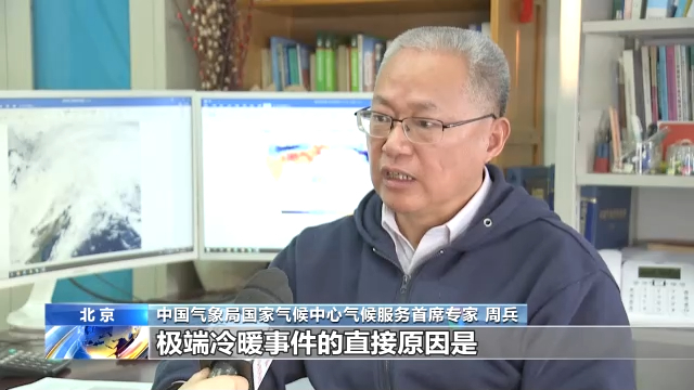 中国气象局国家气候中心气候服务首席专家 周兵:导致近期北半球冷暖不均、极端冷暖事件的直接原因是大气环流的异常,它的根本原因是全球变暖背景下大气的不稳定性增加。