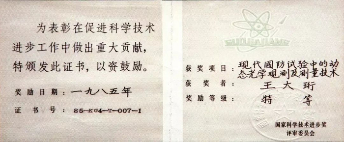 2001年,王大珩荣获国家“863”计划特殊贡献先进个人