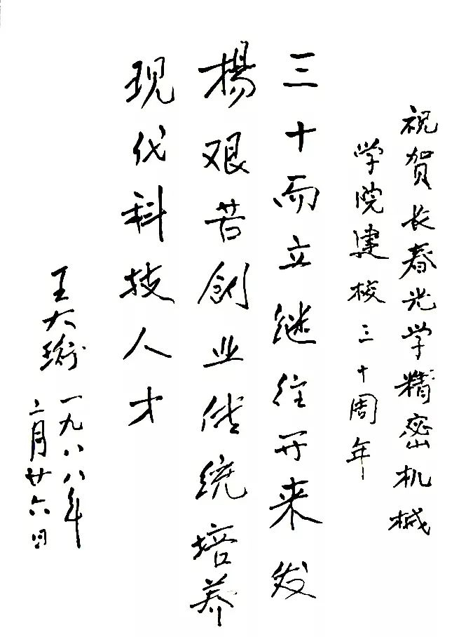 1988年,建院三十周年时,王大珩为学院亲笔题词