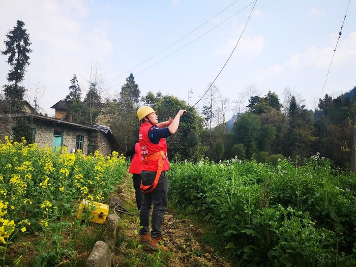 中国移动重庆公司网络维护人员在奉节县竹园镇无山村为客户安装宽带。