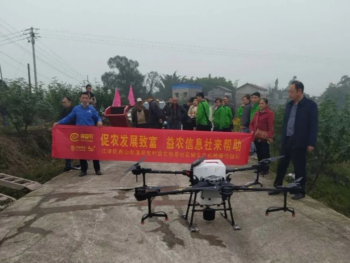 江津区鼎山街道双宝村益农信息社开展花椒种植无人机植保机械化操作培训。