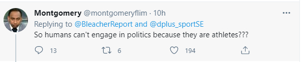 有美国网民就质问说:凭什么运动员不能发表政治观点。