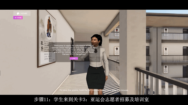 杭州电子科技大学外国语学院副院长、省级外语实验教学示范中心主任、杭州亚组委场馆挂职干部王一安教授介绍,虚拟仿真实验制作了半年时间,听取了杭州亚组委相关部门的专家意见,调整几十次。期间,杭电外国语学院的学生也参与了测试并提出建议,目前,项目团队正据此不断优化和调整实验项目。