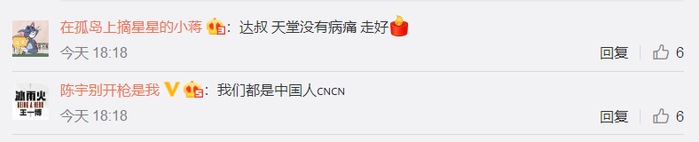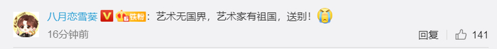 吴孟达病逝消息一出,许多网友纷纷在他最后一条微博下留言:“无语凝噎”,“一路走好,达叔”。还有一位网友写道:“艺术无国界,艺术家有祖国,送别!”↓