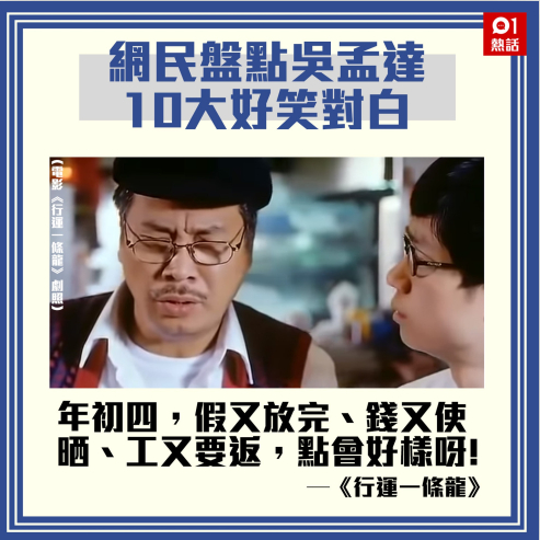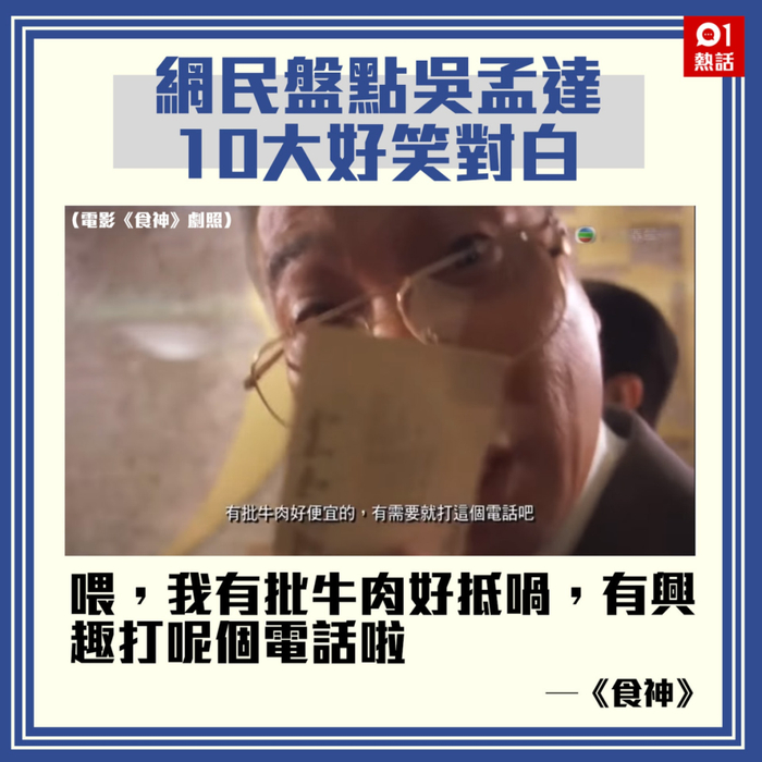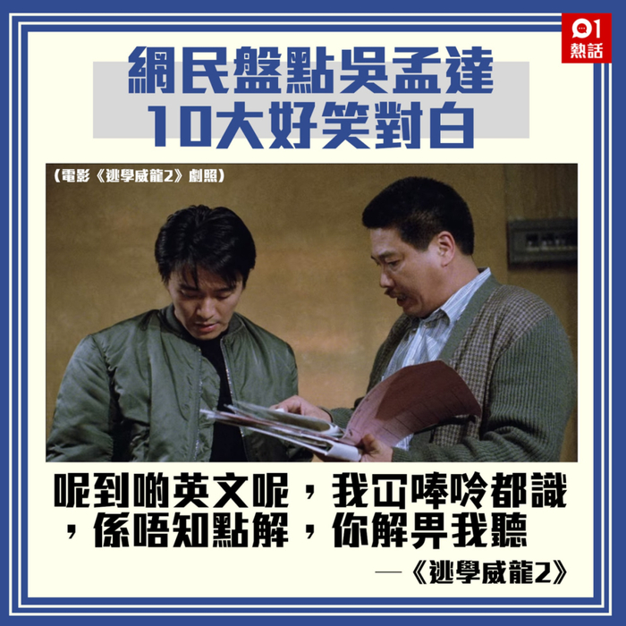 ”据港媒报道,吴孟达进入演艺圈逾40年,参与演出的影视作品无数,其中与周星驰搭档的港产片最经典。有网民过去曾盘点吴孟达在周星驰电影中说过的10大经典对白,来一起重温。↓
