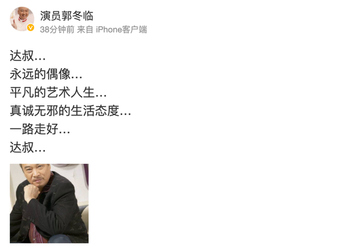 “达叔”走后,周星驰、任达华、朱茵、胡杏儿、释小龙、林志颖、郭冬临等明星发文悼念。