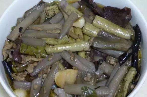 芋花可以说是一道家常菜,主要是与茄子、青椒等一起做酱爆芋花,芋花炒腊肉等也是不可多得的美味。
