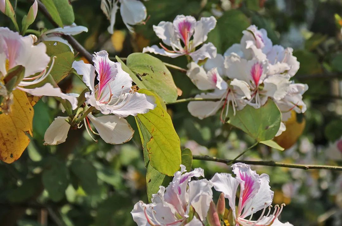 大树白花植物学名称叫“白花羊蹄甲”,属于豆科,大乔木,羊蹄甲属,紫荆族,与紫荆花同属一族,只不过紫荆花叫“红花羊蹄甲”。