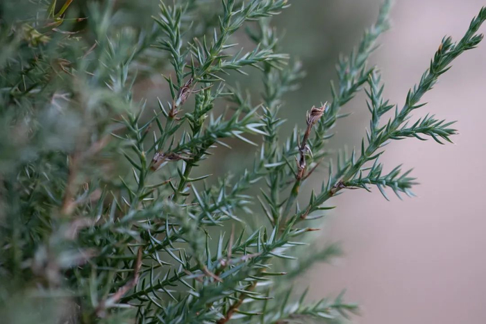 圆柏独树成景,是我国传统的园林树种。虽不如松树奇绝,没有梅花清香,但远远观之,也有一番独特趣味。圆柏幼叶为刺形,摸上去颇为扎手,近近赏玩时还需多加小心。